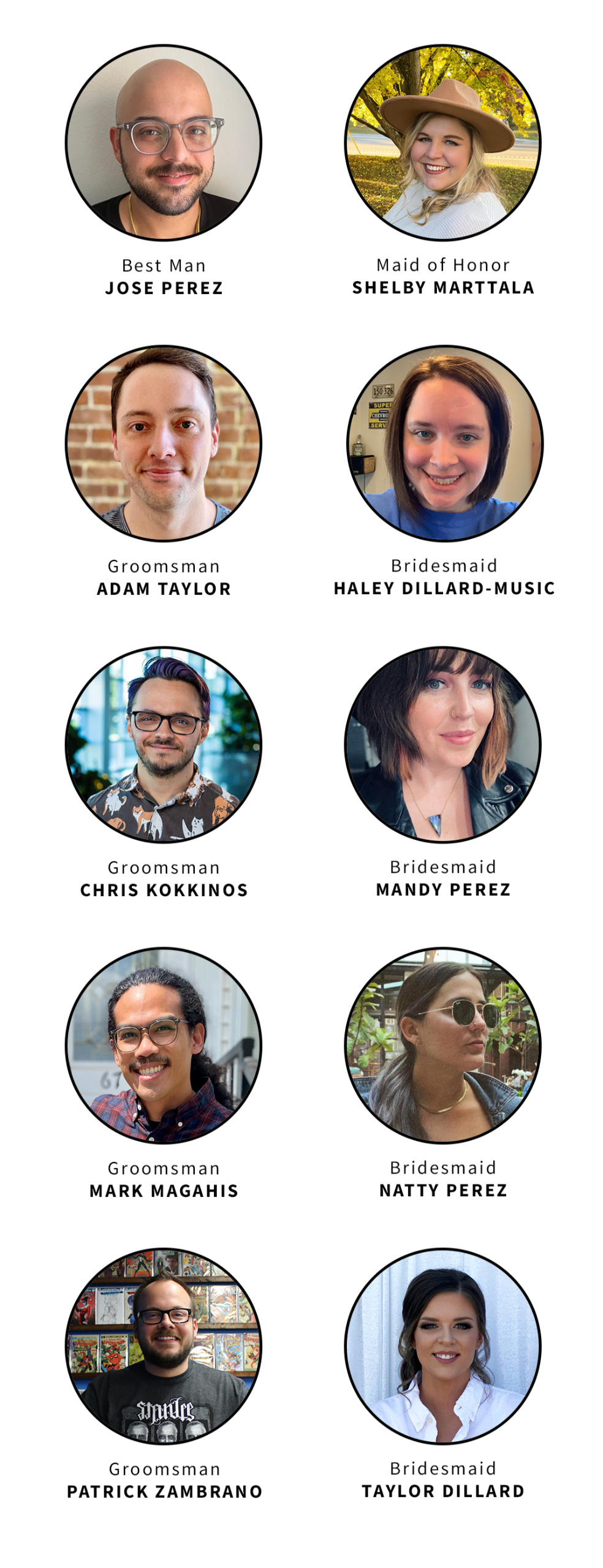 July 2016, Nashville, Tennessee.The night was warm, the beer was cold, and Katy was late. Sitting at the bar in The Flying Saucer downtown, the conversation flowed as easily as the beer and we were excited to meet again. What followed was something neither of us could have predicted.Like all classic love stories, ours began with a swipe on an app. And after a few texts, our first date was set. Fate had other plans, however, if fate was over 20 middle-aged women in cowboy boots and pink cowboy hats. Because when Corbin arrived to where they were to meet, that’s what he found. Quickly the plan was changed to a spot he knew they could get in without a reservation, a rarity in Nashville, even back then.It has been a whirlwind of adventure together ever since. Last minute plane tickets for weekend trips across the country. Meeting Corbin’s parents for the first time in Washington, D.C., and his college friends in Austin, eating an extra cheese Domino’s pizza in bed at the fanciest hotel in Ft. Lauderdale, going on a secret mission to Huntsville, discovering the World’s Largest Cedar Bucket in our own backyard, and starting our week-before-Christmas 36 hours in New Orleans tradition, just to name a few. But for every journey away from home, there was one in it. Countless nights in enjoyed with each other, our amazing framily, the cats, and sometimes a $12 hot dog costume.Then it all changed.In March of 2020, a tornado ripped through our neighborhood in the dead of night. A week after, the pandemic began. But through the change and chaos of it all, we grew even closer together. We learned new ways to surprise each other even though we were stuck at home in a 714 square foot apartment. Corbin made bread…twice. He also built a website for Freya so Katy could see how she was doing that day. We started a Wednesday at-home cinema night to share our favorite films.July 2021, Asheville, North Carolina. Standing at the statue of Diana at Biltmore.The day was warm, the ring was ready, and the rest was yet to come.